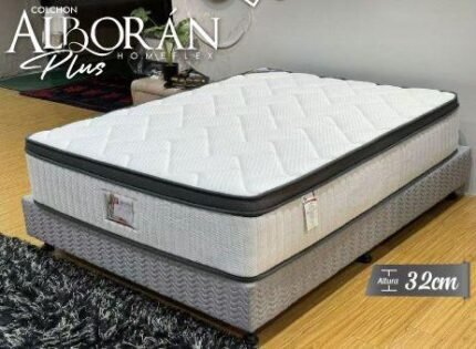 colchón estilo Alboran empaque al vacío, con 10 años de garantía de 32cm altura viene en la medida de 1.20×1.90, 1.40×1.90, 1.60×1.90 y 2.00×2.00